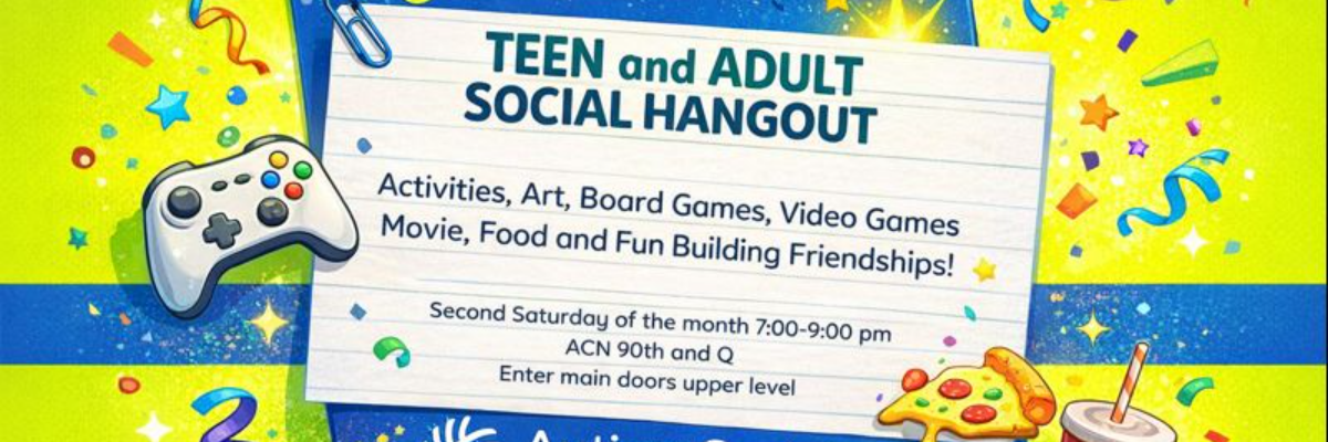 Join us for a teen and adult social hangout on the second Saturday of each month from 7:00 to 9:00 PM CST.