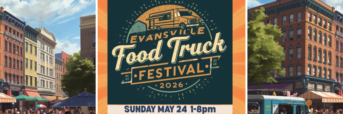 The 2026 Evansville Food Truck Festival in downtown Evansville on Sunday, May 24th 1-8pm.