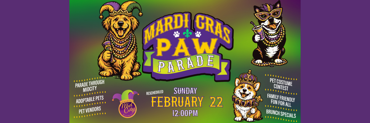 Grab your leash and join the fun at the Mid-City Mardi Gras Paw Parade!